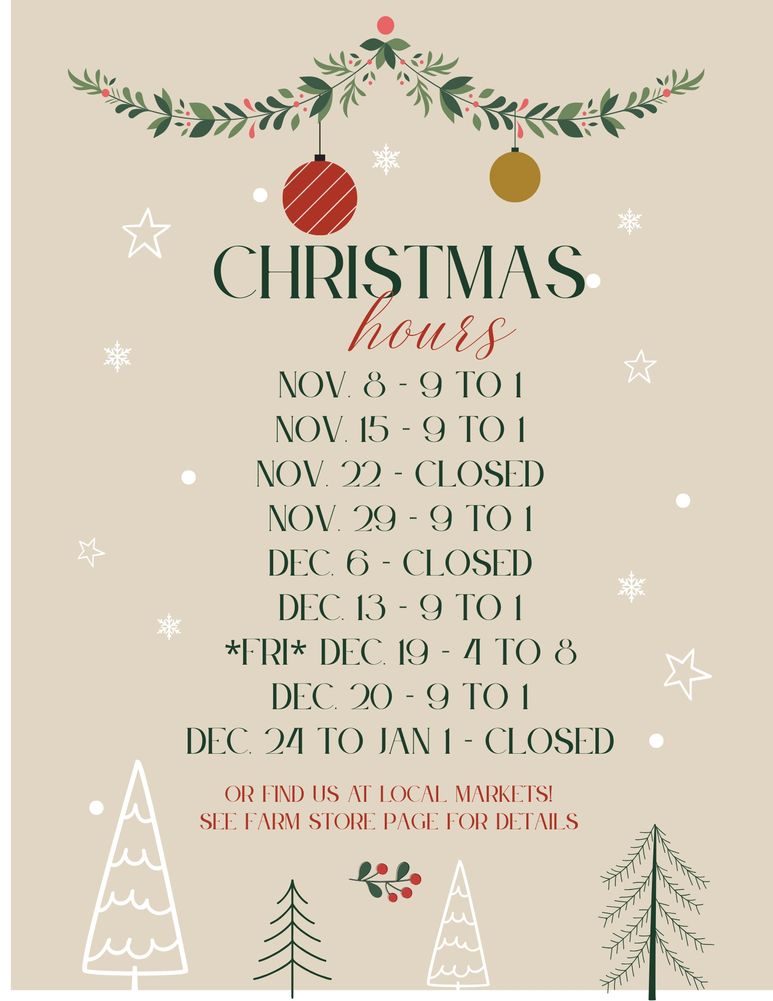 PLEASE CONTACT US BEFORE STOPPING AT THE FARM TO ENSURE WE ARE AROUND TO SERVE YOU.
